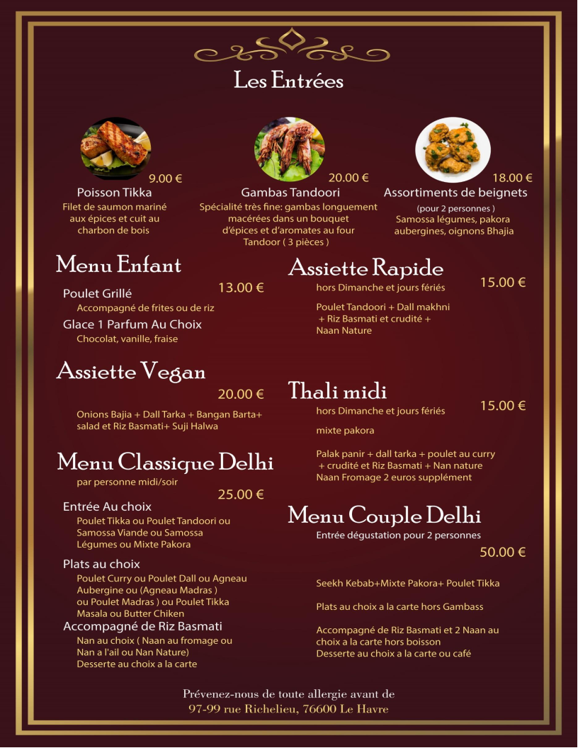 Welcome to New Delhi, a hidden gem nestled at 99 Rue Richelieu, 76600 Le Havre, France. This Indian restaurant is renowned for its vibrant flavors and authentic dishes that transport you straight to the heart of India. With a phone number of +33 2 35 22 95 78, this culinary haven is easily accessible for food lovers seeking a remarkable dining experience.
